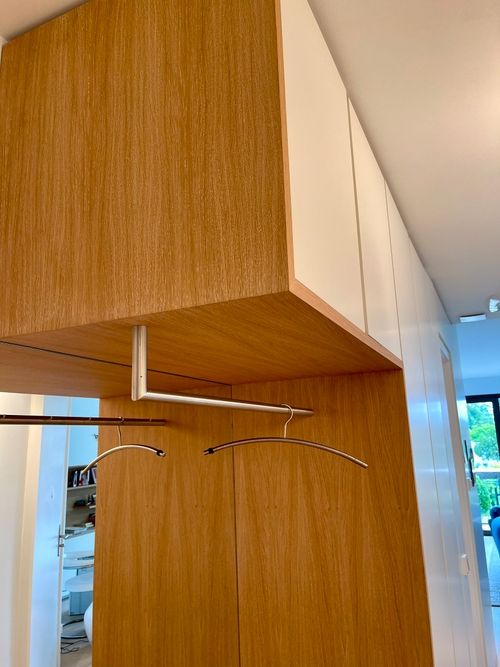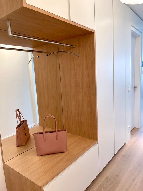 Klares Design trifft auf clevere Funktion: Sanfte Töne, seidenmatte Oberflächen und warme Metallakzente schaffen ein stilvolles Schlafzimmer mit maßgefertigten Stauraumlösungen. Jeder Wunsch wurde präzise umgesetzt – für ein Raumgefühl, das Ruhe ausstrahlt und Struktur schenkt.